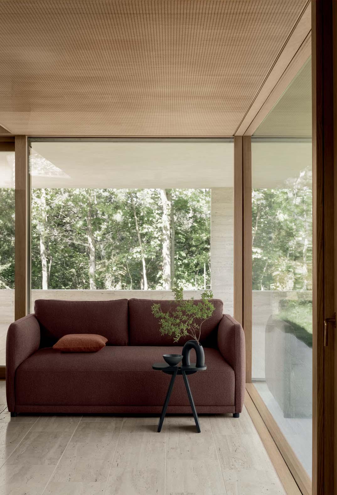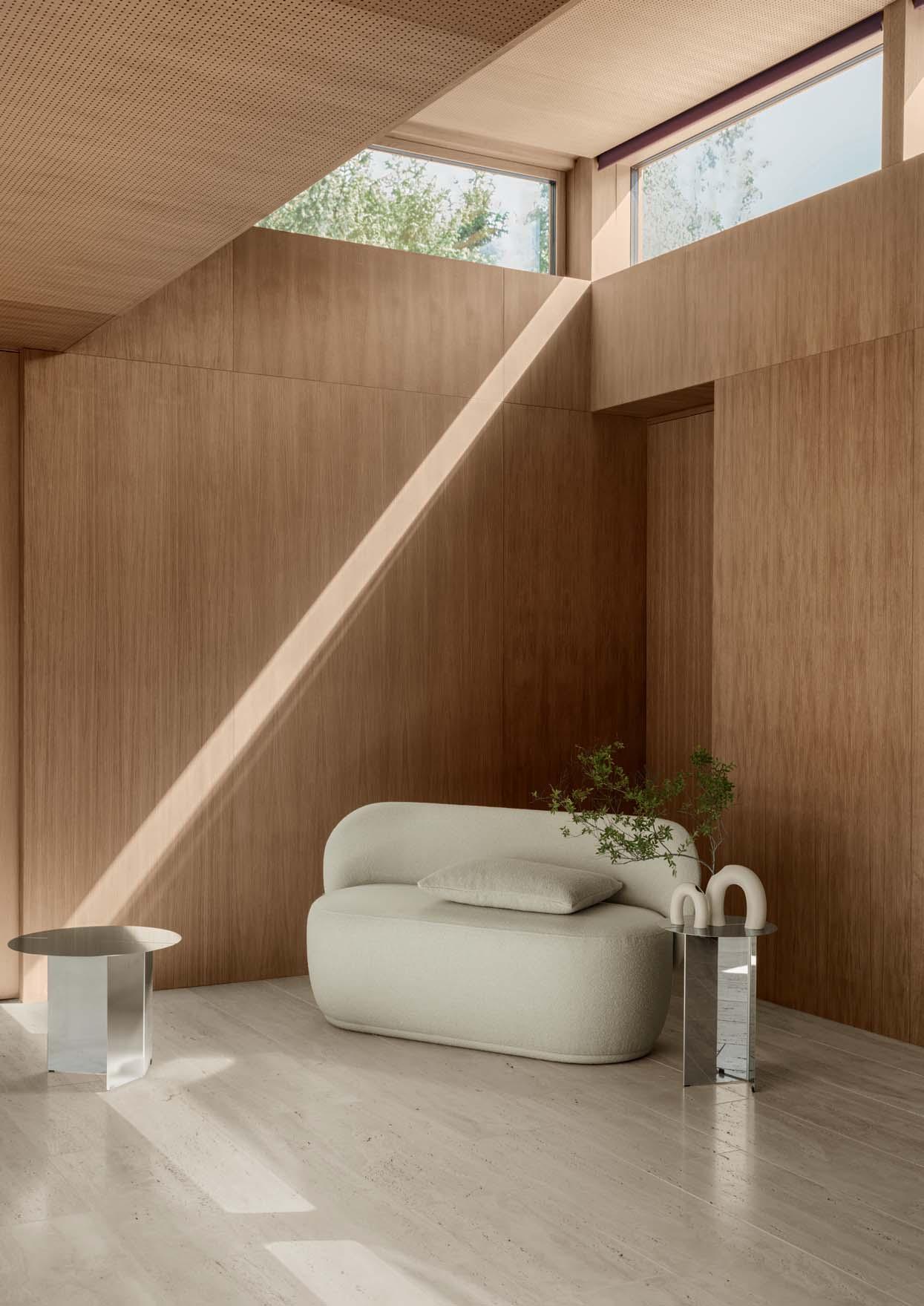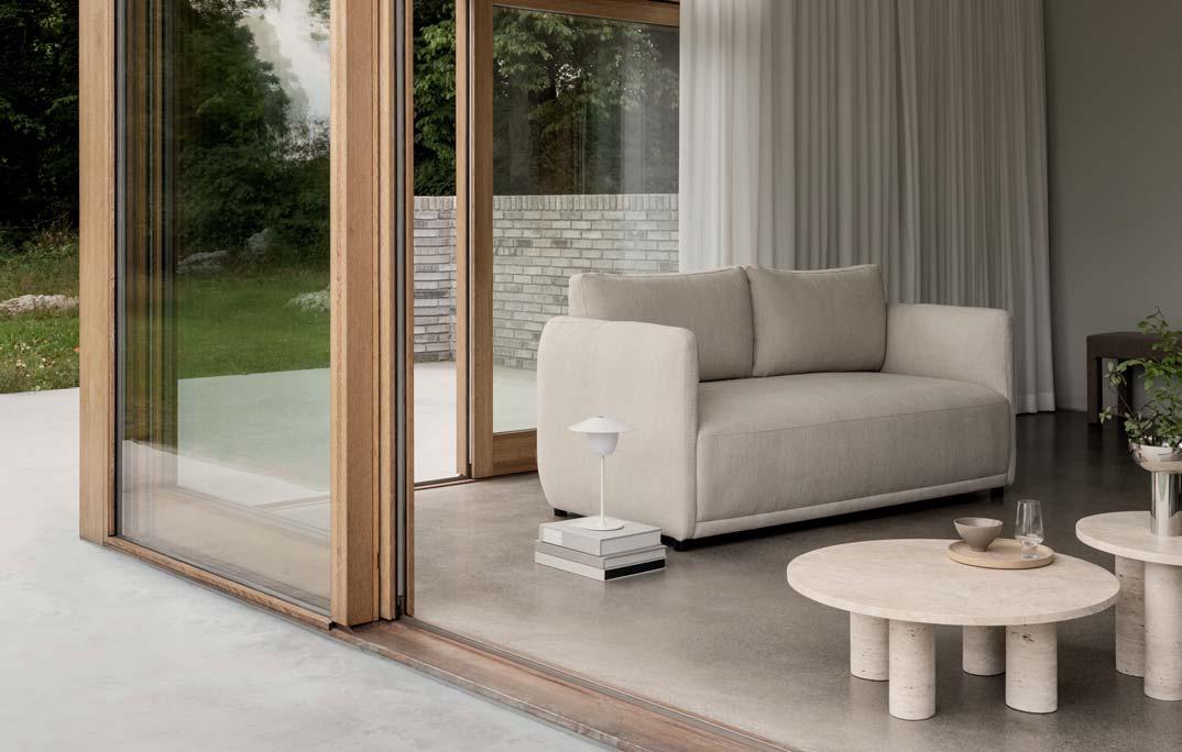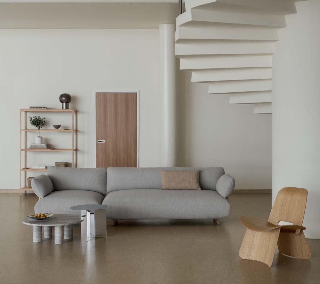 Crafted to impress from any perspective, Moco features a minimalistic frame of tensioned veneer that supports both the back and the armrests. Its design echoes the ethereal quality of floating clouds, with cushions resting on a wooden base that gives the illusion of levitation, lending the piece a sense of lightness and grace. Moco’s modularity extends to its customization options, as there are eleven fabrics to choose from, to make sure it fits beautifully with your existing décor. Each sofa is made to order, allowing for a personal touch that ensures the optimum in grace and style.