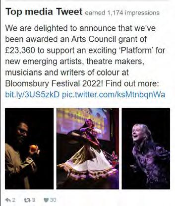“This has been an outstanding year for Bloomsbury Festival both in terms of the scale of activity and the audience numbers. The easing of the pandemic restrictions has enabled us to bring the streets and venues of Bloomsbury back to life in 2022. The support from all our partners, sponsors and grant funders has allowed us to work more closely with the local community and explore new partnerships and emerging artists”.