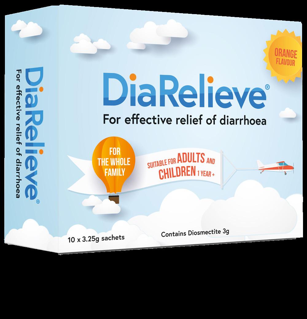 Diarelieve, containing a natural clay that can absorb up to 8x its own weight in water, can be used for symptomatic relief of diarrhoea for adults, and children 1 year+.