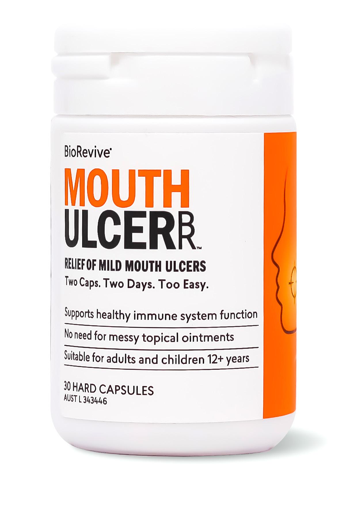 Topical mouth ulcer treatments are applied to the lesion itself, whereas BioRevive MouthUlcer’s capsules contains vitamins, minerals, amino acids and other nutrients that work collectively to support the body’s own ability to heal itself.