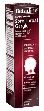 A convenient, ready-to-use anti-bacterial gargle that can be used in the treatment of sore throats. Solution does not require dilution.