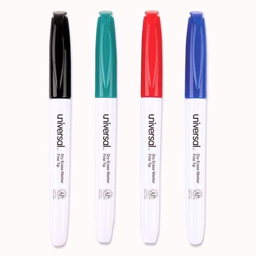 Pen Style Dry Erase Marker, Fine Bullet Tip, Assorted Colors, 4/Set #UNVOS0010005
