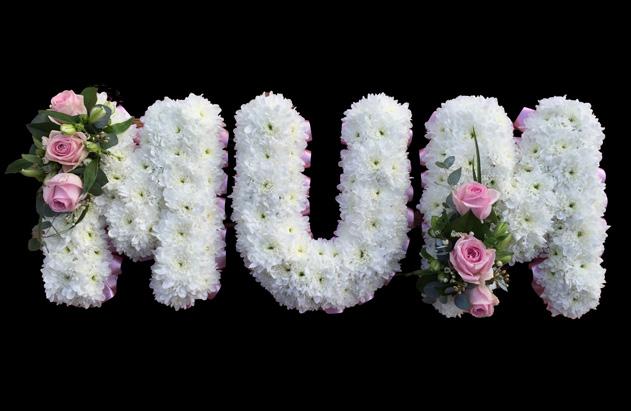 Letters are available in mixed flowers or massed chrysanthemums with contrasting accent sprays.