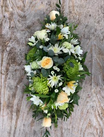 Spray arrangements are a beautiful tribute that are laid on top of the casket.