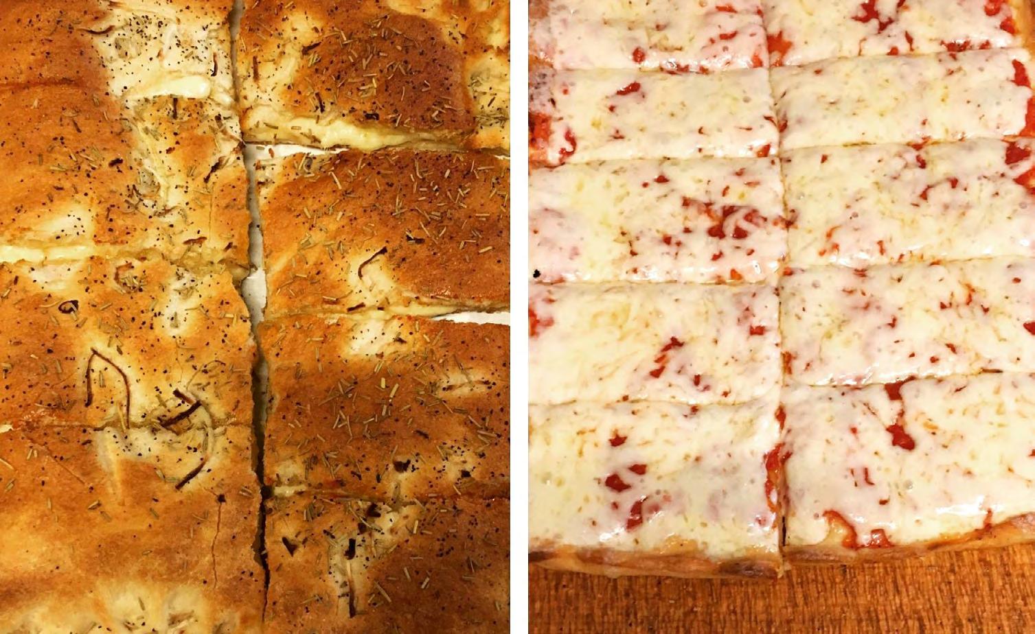 The pizza is a more rustic, home-style recipe that includes bready dough, a heavy helping of thick “Sunday” sauce, bell peppers and Romano cheese in lieu of mozzarella.