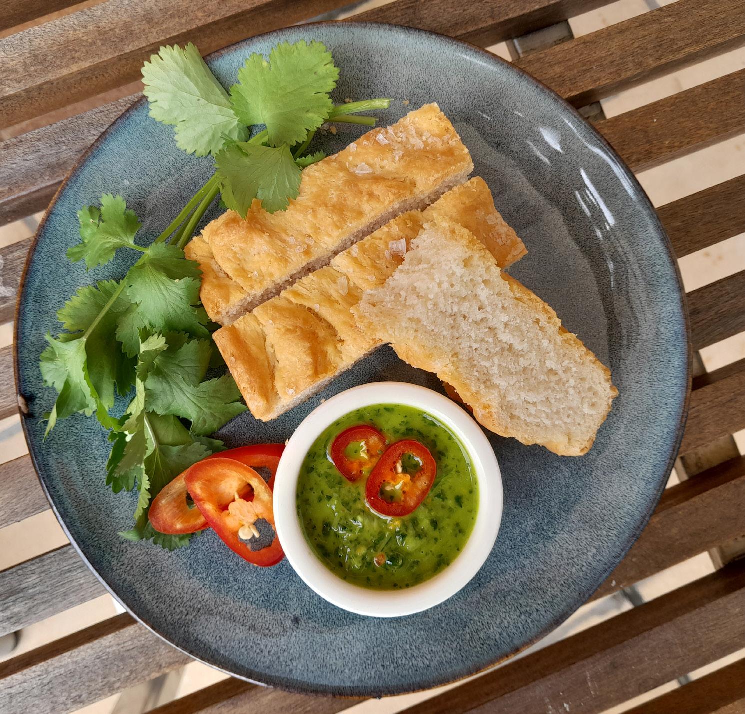 Preheat oven to 180’C, transfer dough to an oiled baking tray, drizzle with olive oil and sprinkle with sea salt, bake until golden on top and cooked through.