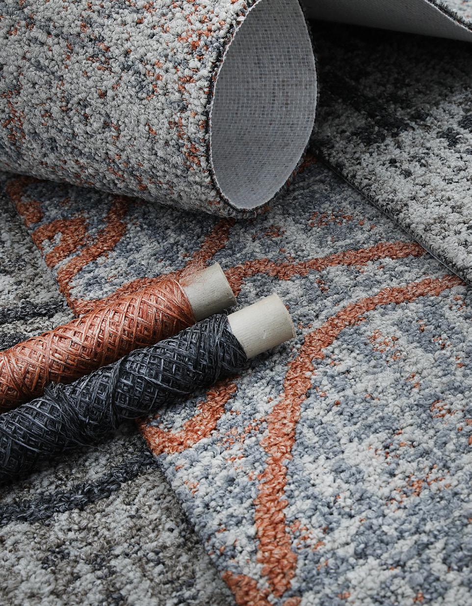 Definity bound area rugs combine artisanal handmade quality with precision sculpted multilevel cut and loop carpeting.