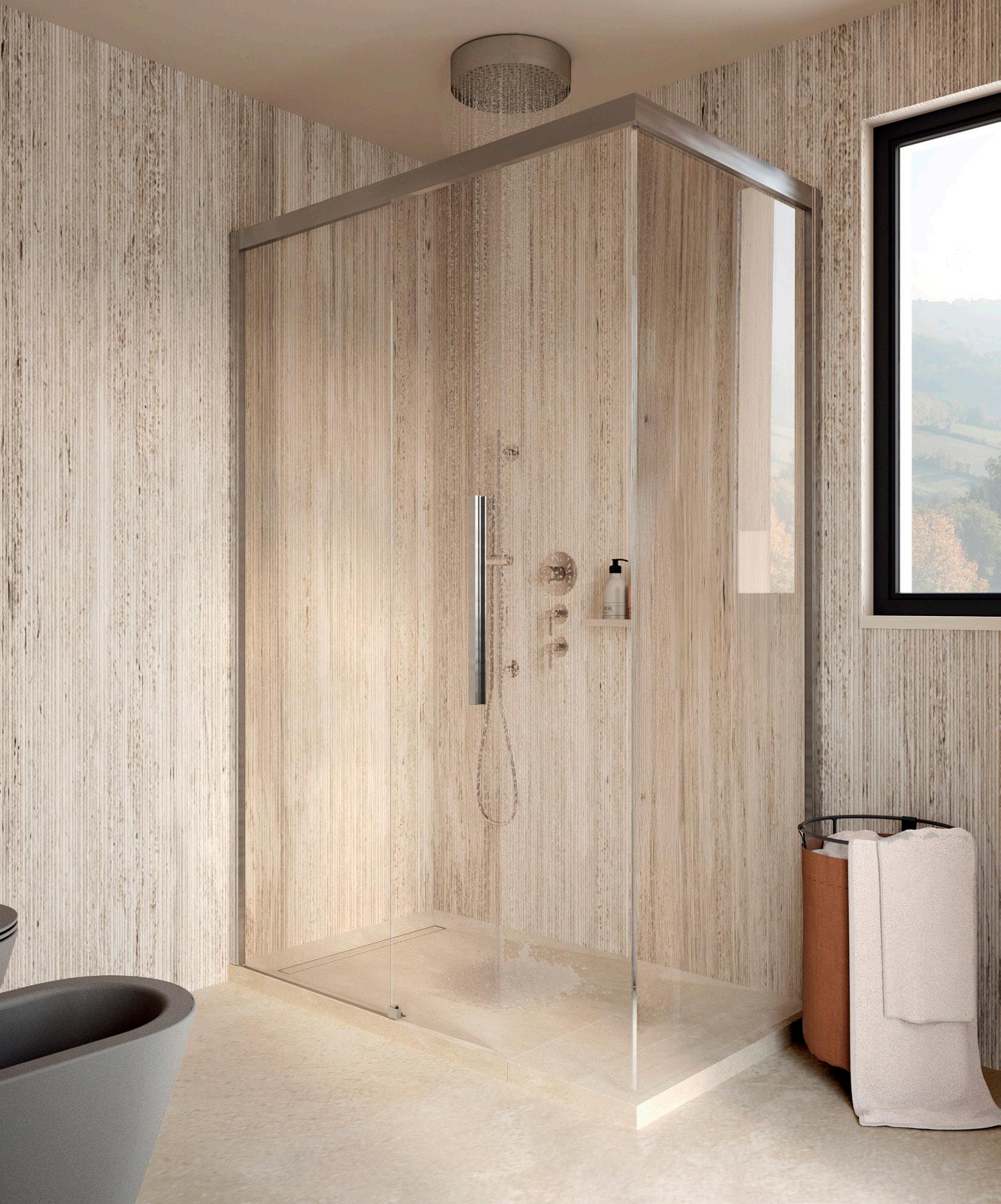 • È possibile realizzare una pannellatura a misura dello stesso materiale del piatto doccia, nel caso in cui questo sia in resina;