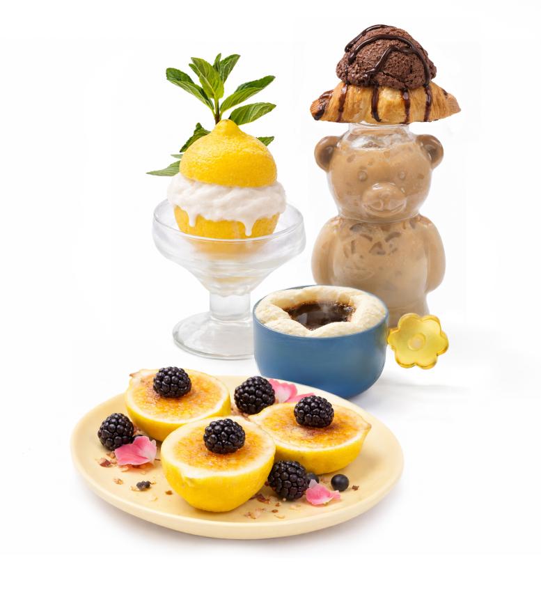Relleno de crema de limón estilo “Carlotta” con galleta María®, acompañado con mix de frutos rojos y coronado con ralladura de limón y azúcar glass.
