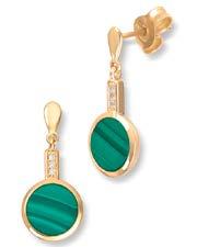 Anheng og ørepynt i 14 kt. gult gull med diamanter og malakitt sten. Ørepynt 7.500,- Anheng 5.500,GULLBORGEN