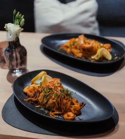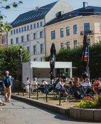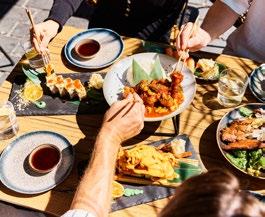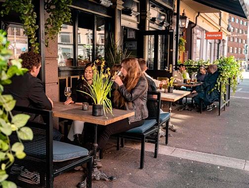 hos Nabo Kitchen & Bar, Sumo og Yum Cha, som tilbyr et bredt spekter av asiatiske retter. Kos deg med alt fra deilig sashimi til freshe «poke bowls», dampede dumplings og smakfulle curryretter, under åpen himmel. I Kirkeveien 51 finner vi den familiedrevne indiske restauranten Curry and Ketchup