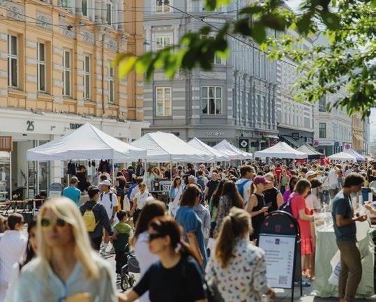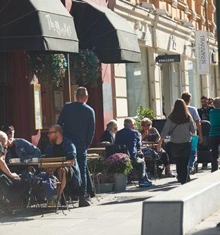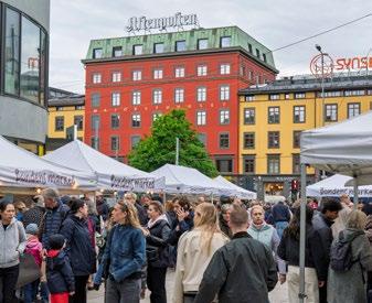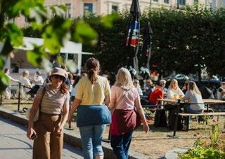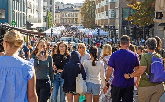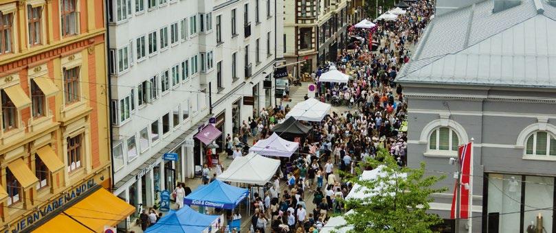Rundt deg myldrer det av liv – folk med handleposer, barnevogner, venninnegjenger på jakt etter lunsj. Her finnes noe for alle.