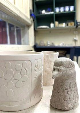Gunnar og Marianne bruker fagkunnskapen sin på en litt utradisjonell måte – her på keramikkrommet.