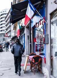Gjennom kafévinduet skimter man varme crêper bli stekt på rykende varm jernoverflate. Under blå- og hvitstripete markiser kan alt fra quiche til terter – og selvsagt croissant og eclair –nytes fra matchende blå- og hvite stoler med umiddelbar nærhet til handlegaten og T-banen.