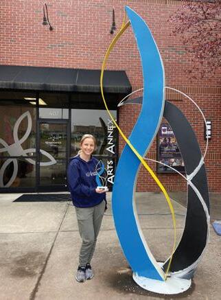 The 2024 Wake Forest Film Festival awards were created by artist Jordan Parah. The awards are miniature replicas of the sculpture, “Dancing in the Moonlight,” that currently lives outside the Renaissance Centre welcoming all who visit. The nine-foot sculpture is created from painted stainless steel and was on display in Roanoke, Virginia and Pitt County, NC, before finding its permanent home in Wake Forest. “Dancing in the Moonlight” was purchased in 2022 by the Public Art Commission of Wake Forest with funds donated from the Friends of the Wake Forest Library.