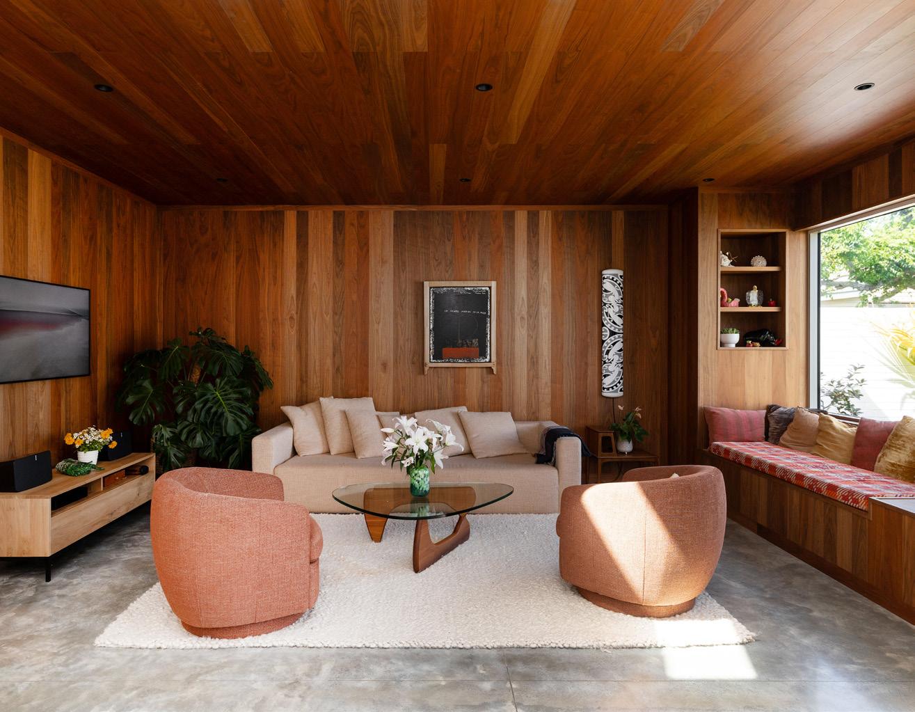 The exterior now boasts a refined, low-maintenance palette of New Zealand-made bricks, coloured steel and warm cedar accents, blending durability with aesthetic appeal.