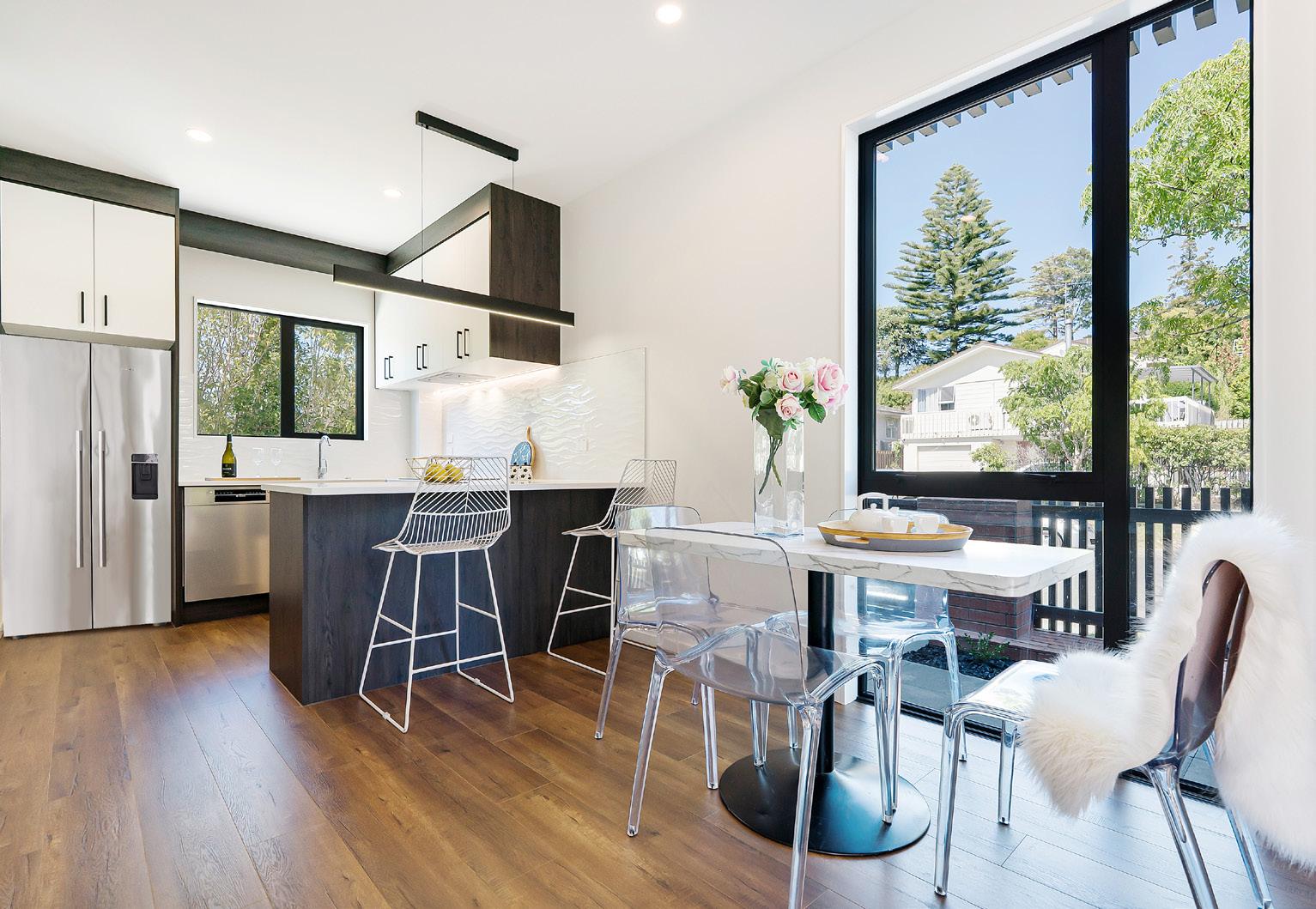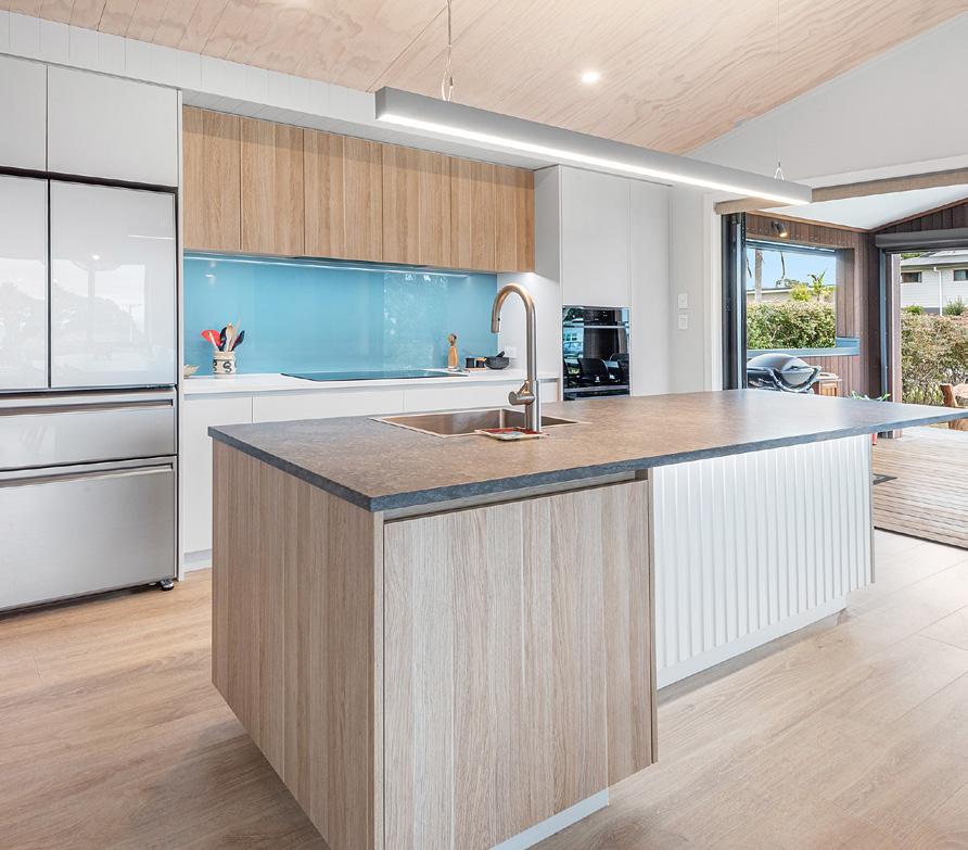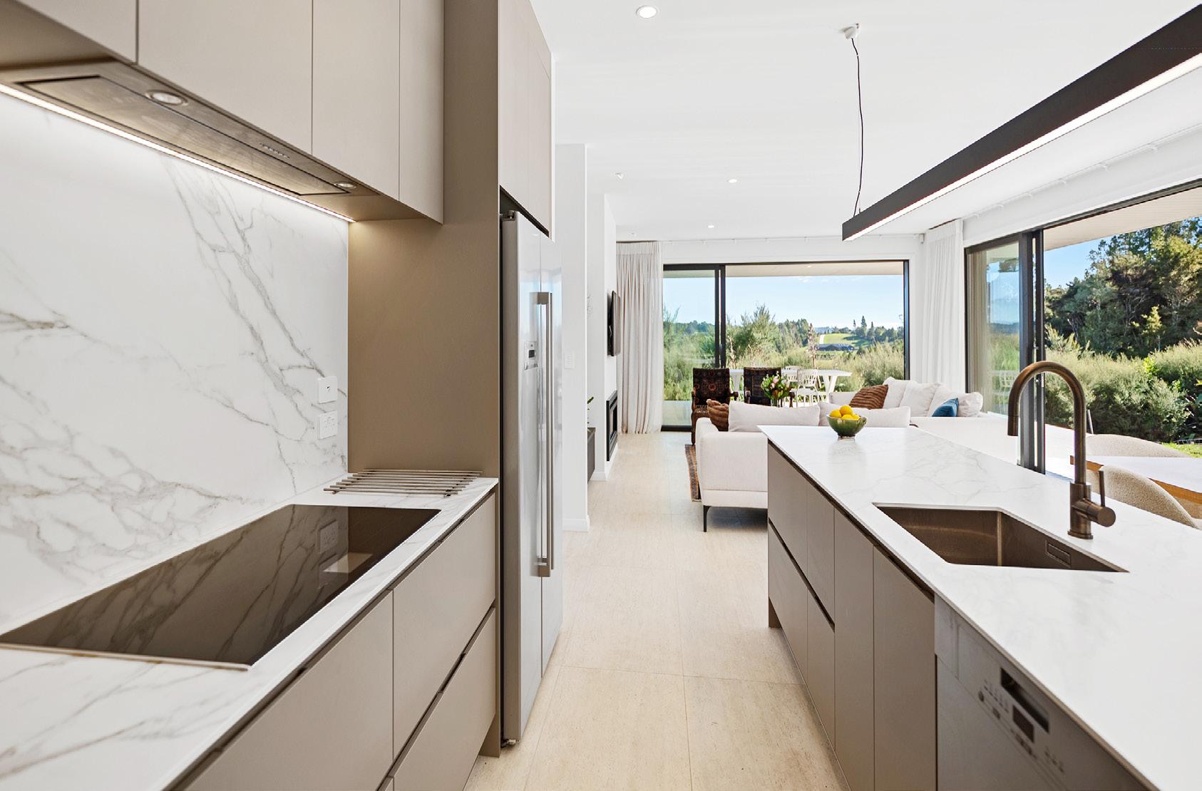 thoughtfully resolved, from the bespoke banquette to subtle lighting and smart spatial planning. Outdoors, the addition of a swimming pool and fully landscaped gardens enhances the sense of sanctuary. The result is a cohesive home designed for both comfort and sophistication. Completed over 15 months, the project exceeded expectations for both builder and owners ― a testament to collaboration, precision and design integrity. For more of this house go to houseoftheyear.co.nz