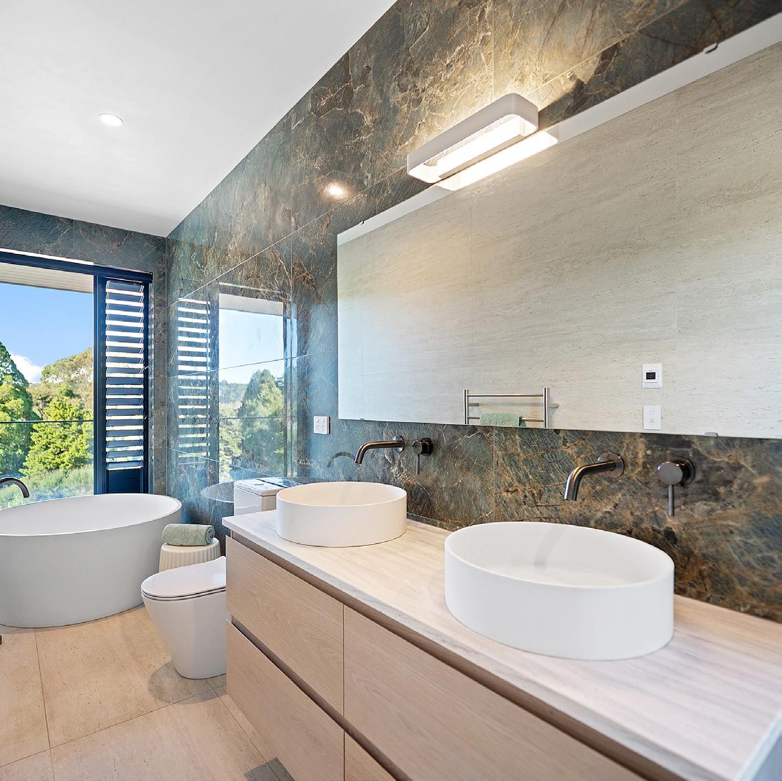 Modern bathrooms embrace clean lines, neutral palettes and refined materials that cleverly transform a functional space to one of timeless sophistication.