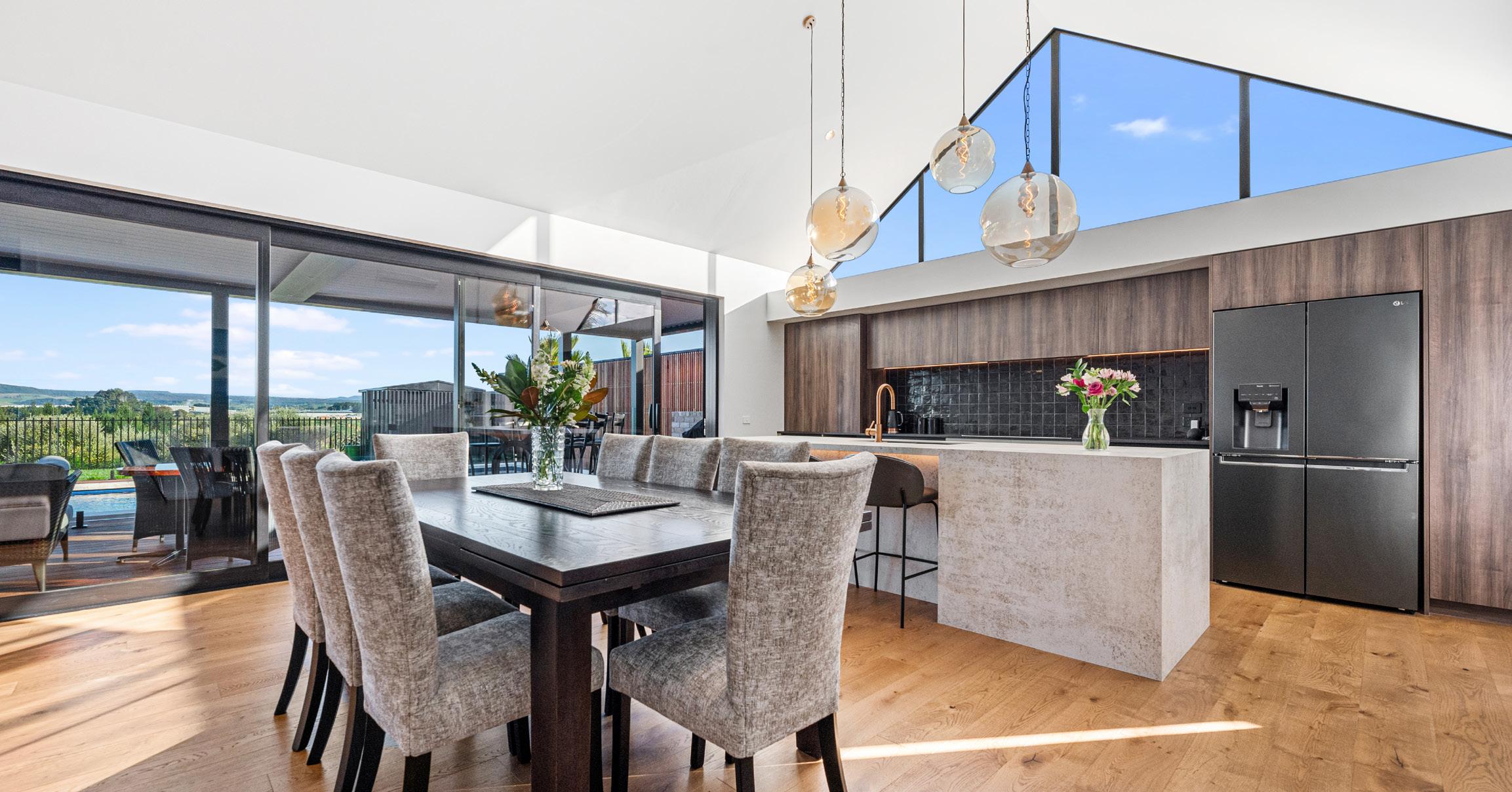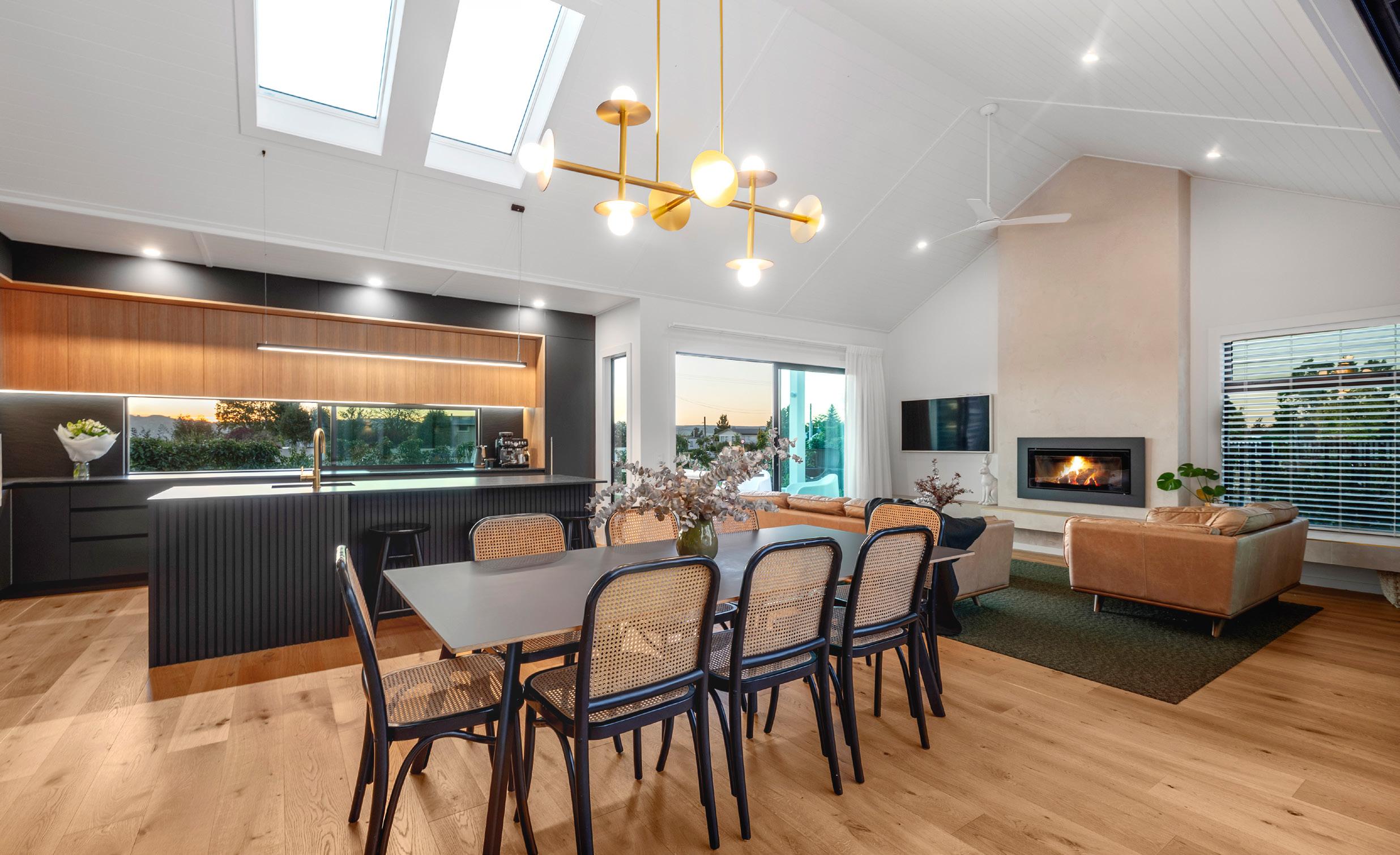 A new, open-plan layout moves effortlessly between the entertainer’s kitchen, living and dining