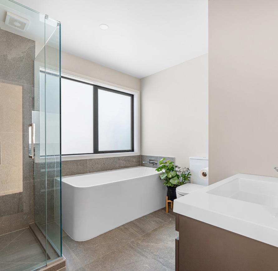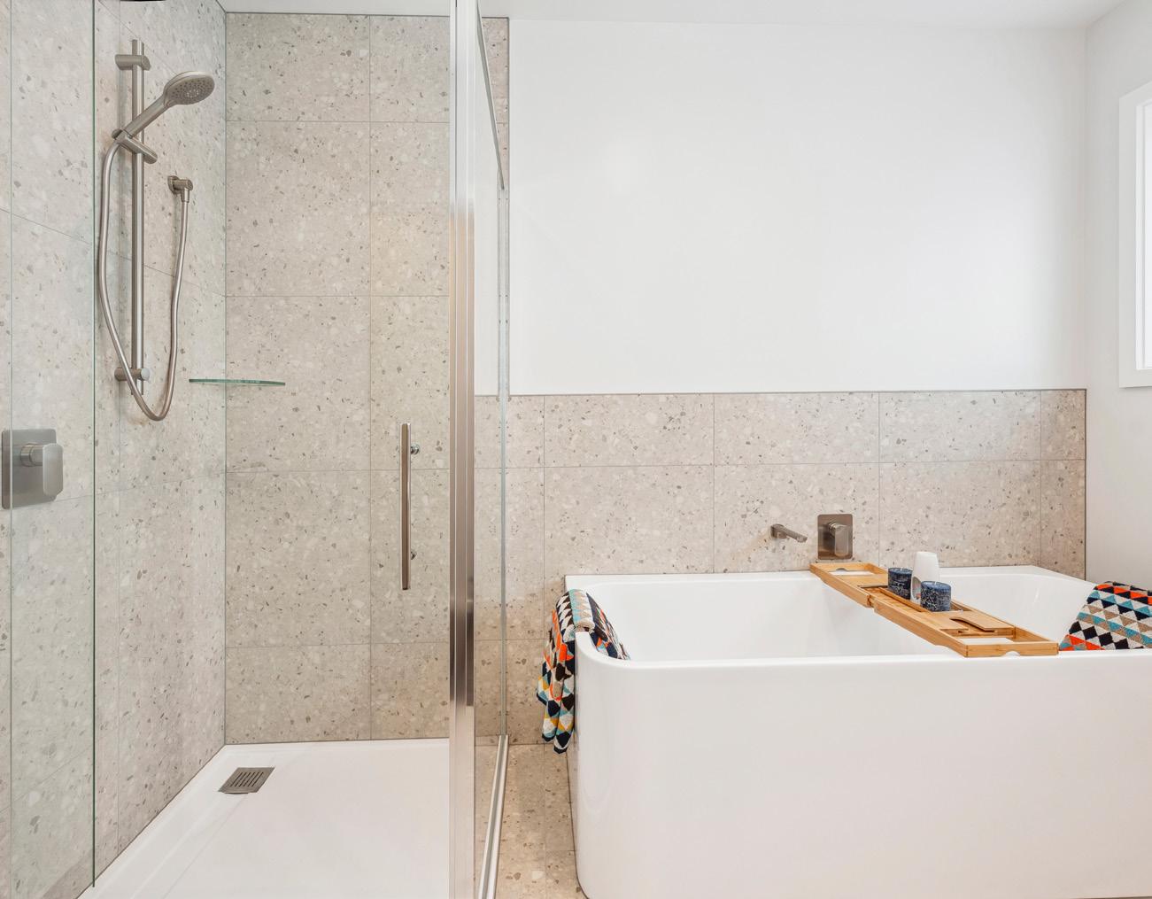Modern bathrooms embrace clean lines, neutral palettes and refined materials that cleverly transform a functional space to one of timeless sophistication.