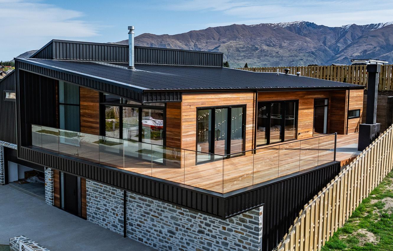 The client wanted a quiet and environmentally sound home too, so structural insulation panels (SIPs) were used. These are airtight, enhance indoor air quality, cut construction waste and reduce energy use and greenhouse gas emissions. It’s a good look, too. The new wing is clad in dark horizontal weatherboard and contrasts nicely with neutral cladding trimmed with schist.