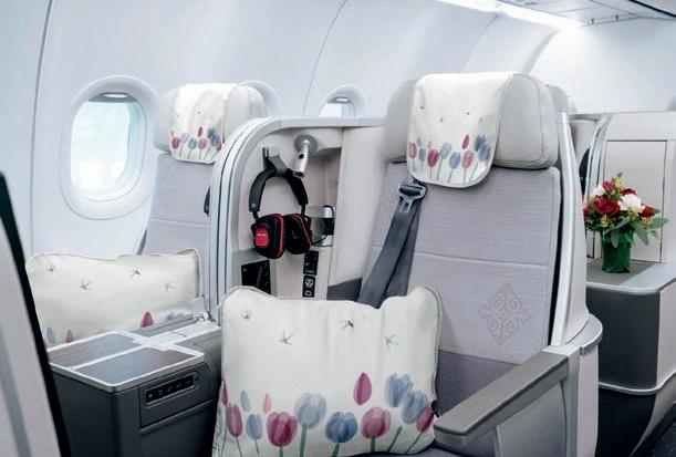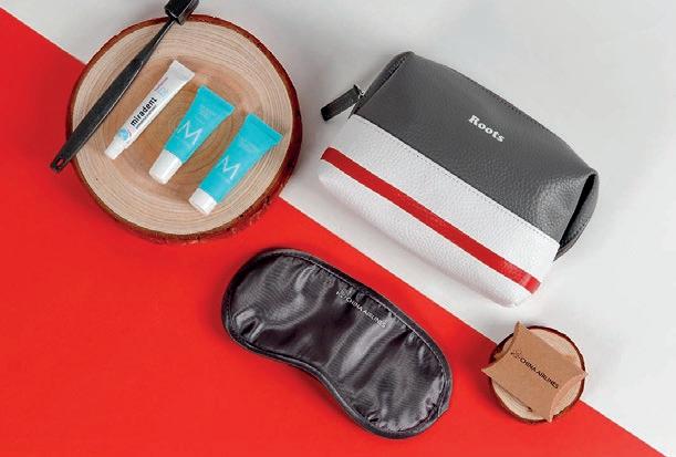 A female amenity kit combining Moschino design and Templespa skincare. Made from recycled materials to align with the airline’s ESG standards. airastana.com AMENITIES