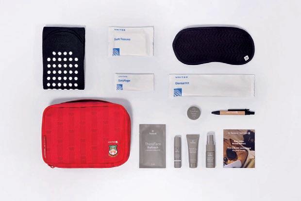 earplugs, and other comfort items. A romance card invites passengers to explore Therabody’s wider wellness ecosystem through a co-branded landing page, where they can discover additional products and even earn MileagePlus miles on purchases.