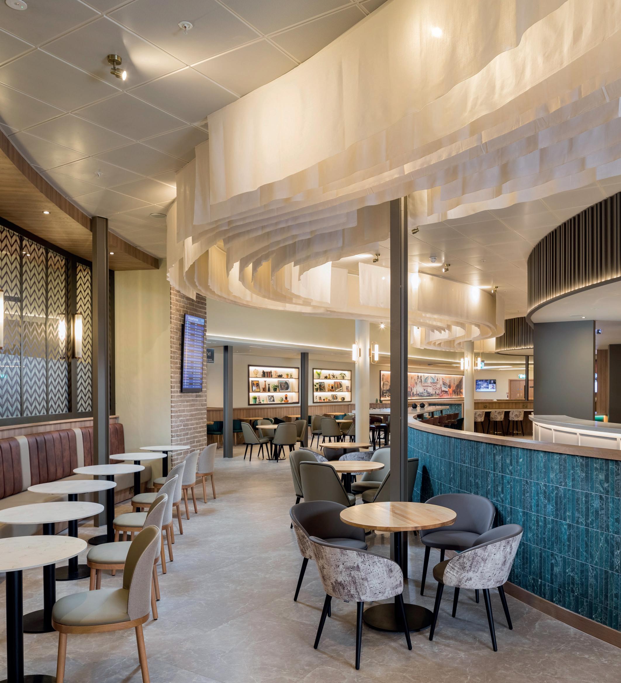 Over 200 of our hotels feature Bar Cafés offering breakfast, barista coffee and evening meals. And 77 of these hotels have been updated with our latest 85 Bar Cafés, which feature plug sockets and charging points, providing another working space.