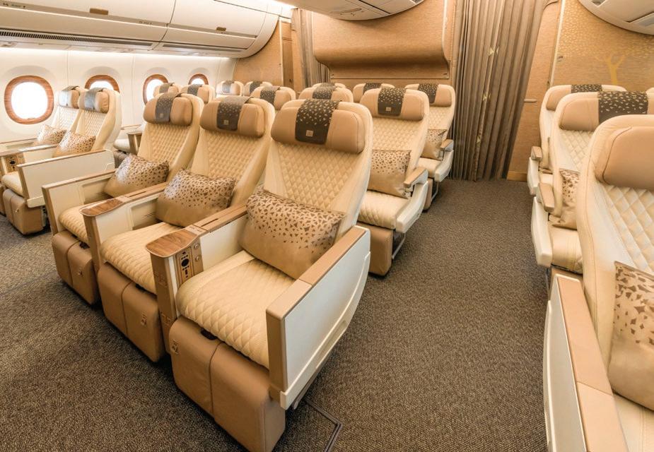 THE FLIGHT Emirates introduced a Premium Economy cabin on flights between Edinburgh and Dubai when it began flying an Airbus A350-900 on the route in January 2025. A total of 21 seats are available in a 2-3-2 configuration. Cream-coloured leather seats offer a footrest and recline up to eight inches, making them ideal for overnight flights departing from the Scottish capital at 8:55pm.