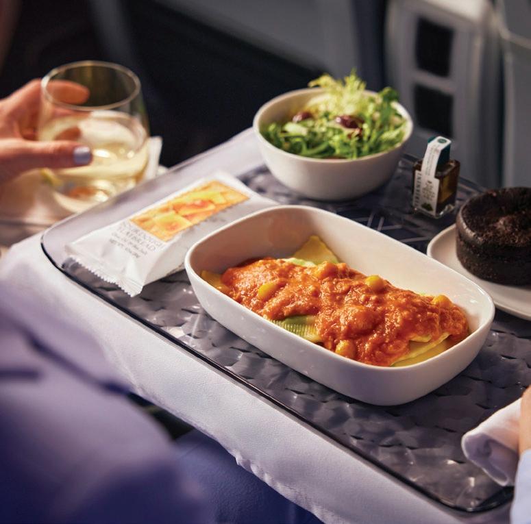 THE SERVICE I had forgotten to preorder a plant-based meal but this wasn’t an issue. That said, I was initially offered a cold tomato and courgette dish, which although beautifully presented, wasn’t to my tastes. Otherwise, the meat-free options were excellent – there was a wonderful ramen soup with tofu chunks, a vegetable curry with rice and beans, a superb tofu steak Thai style curry and summer rolls with soy sauce and okra. There was a generous choice of entertainment, and I could have opted