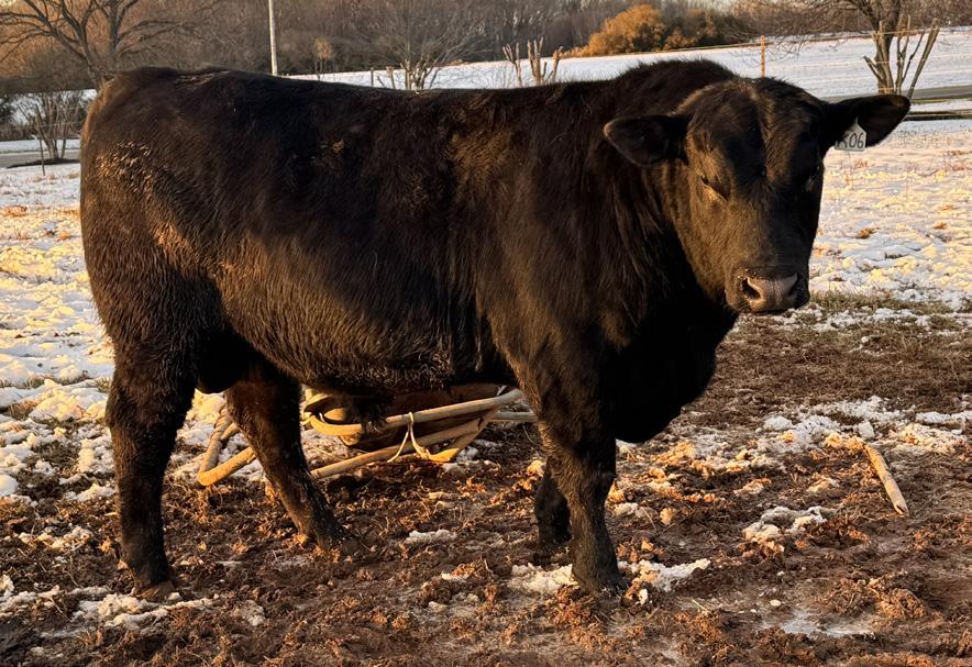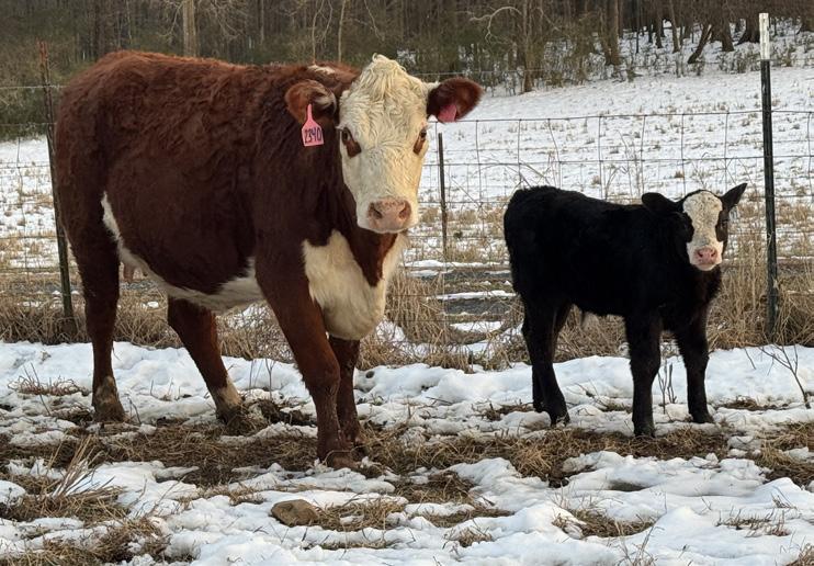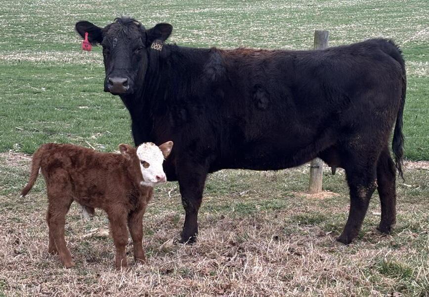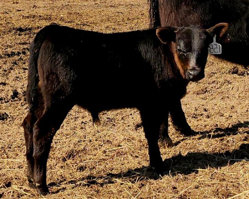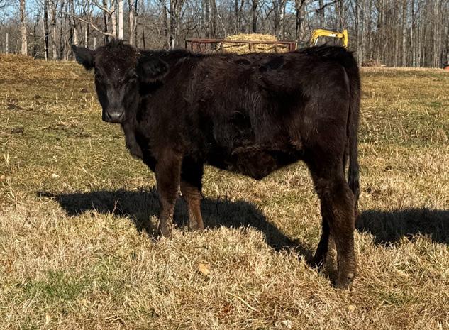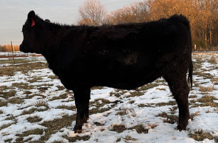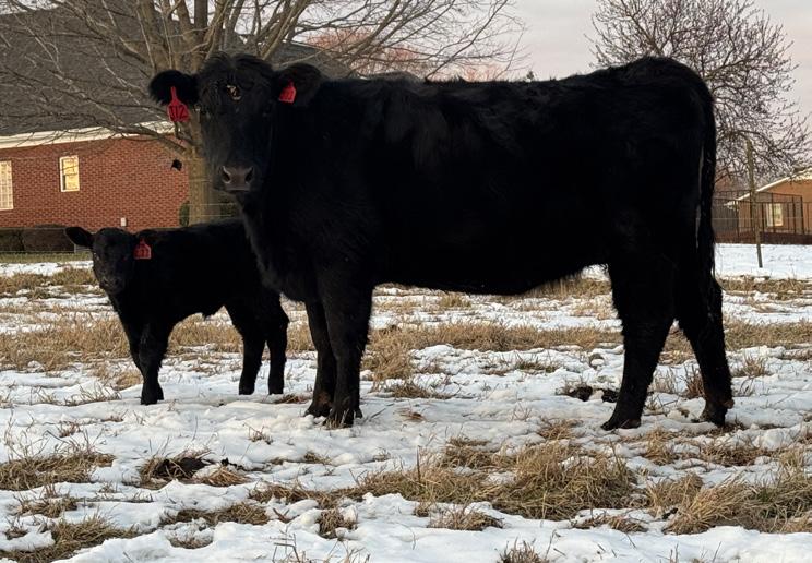 CONSIGNED BY K & G FARMS Black • Polled. BW: 69 lbs. Excellent young Mama Cow, with an awesome Bull Calf by her side. This Cow is pasture exposed from 01-02-26 until 03-12-26, to Purebred Registered Simmental Bull 4527929 K & G M106 Michael, BW 74lbs, Tattoo M106. Calf: Commercial Bull Calf 12-04-25, Tattoo N155, BW 70lbs.