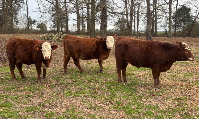 2 Red Angus-x-Hereford cross baldies and 1 black baldie heifer, all born September 2024.