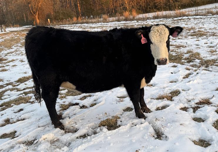 Born March 2025. Heavily pigmented, fancy heifer! Her mother was purchased from Whitehawk Ranch in GA, and is a very nice young cow. Sired by a Red Angus bull.