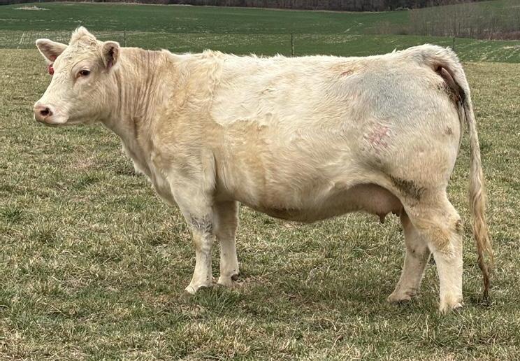 A 5 year old Charolais cow from Bickett Genetics in GA. She will calve anytime to registered Red Angus bull.