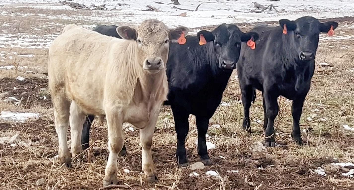 Genetics: Sired by primarily Angus bulls from EBS Farms or a couple Charolais and SimAngus bulls out of crossbred cows. All chars are crossbred with a black nose or gray/yellow, no purebred pink-noses.