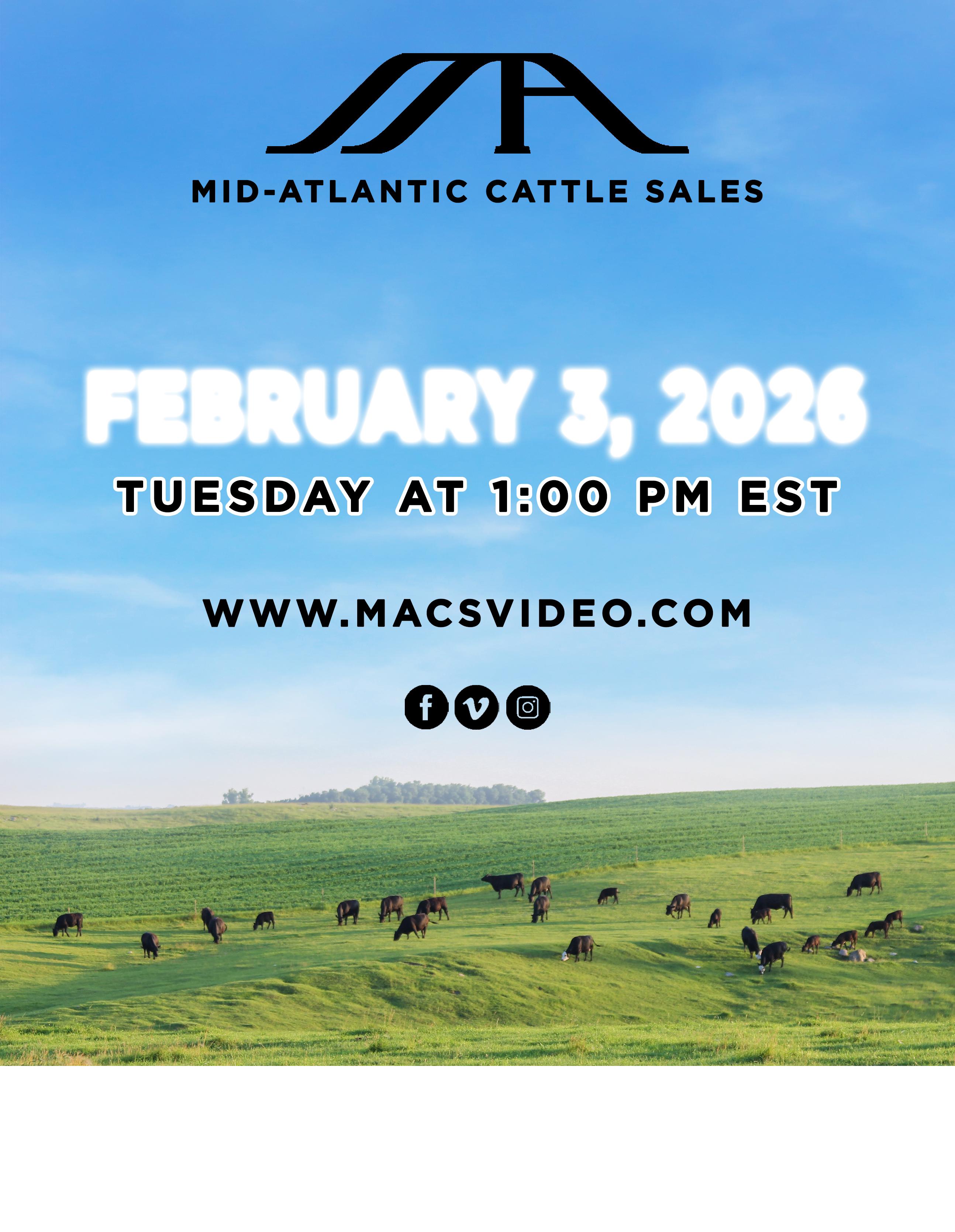 Mid-Atlantic Cattle Sales - Tuesday, February 3, 2026 - 1:00 pm est.