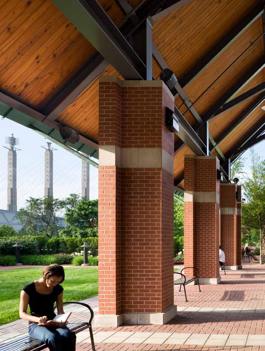 The green “necklace” around downtown KC that Tom was instrumen- tal in pulling off. Paying close attention to the details that make up the public realm, be it on the Bartle Conference Center, Deramus Pavilion, Broadway Square or Reynolds Center at MU.