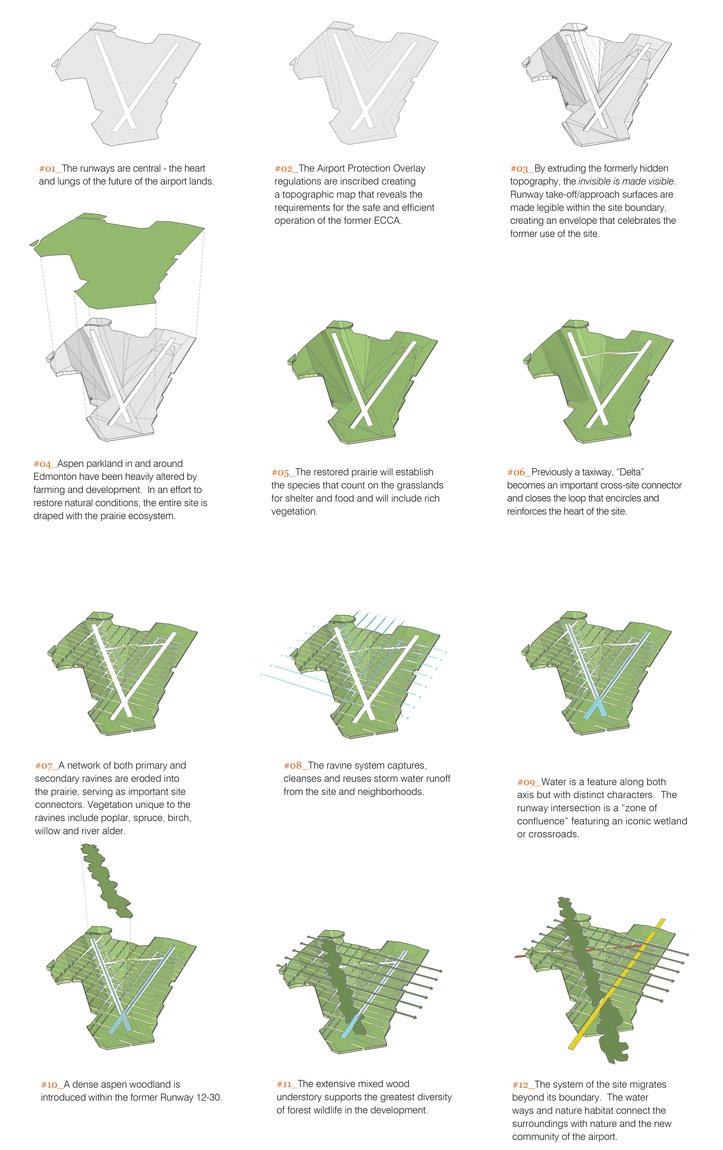 The conceptual master plan was driven by four design principles: Making the Invisible Visible – The invisible topography of the airport’s flight paths are reinterpreted through the built form to become an iconic reminder of this site’s rich history.