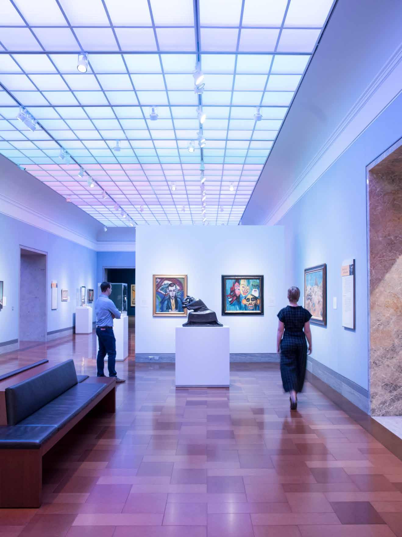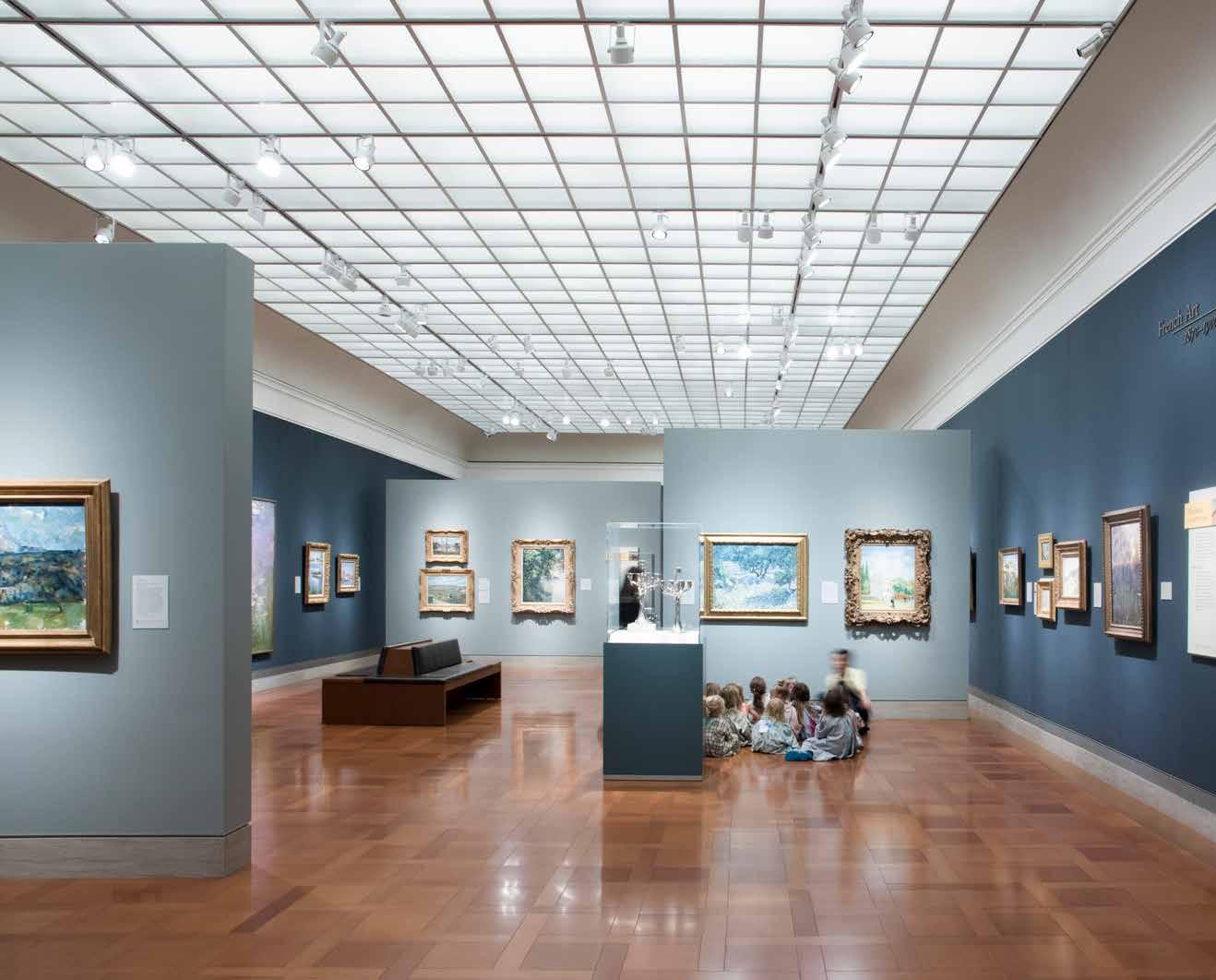 The new Bloch Galleries feature the Marion and Henry Bloch Collection of Impressionist and Post- Impressionist art, comprised of 29 masterpieces acquired by the Bloch family and gifted to the museum in 2010. The Bloch Galleries create a permanent home for the Bloch Collection and welcomed nearly 3,500 visitors during the galleries’ opening weekend. The expanded galleries add more than 900 linear feet of wall space and create an open viewing experience with sight lines encouraging viewers to make connections among works. The design team’s cohesive approach to the Bloch Galleries creates a harmonious connection with the existing historic building while incorporating contemporary construction methods and cutting-edge technology. The galleries feature state-of-the-art technology, including tunable dynamic white lighting that can simulate the environments for which the works were originally created and allow precise control of lighting color and intensity on each specific artwork in the galleries. The original glass ceilings were replaced with the custom laylite ceiling panels developed by BNIM to replicate the historic design, integrate life safety systems, and enhance the ambient gallery lighting.
