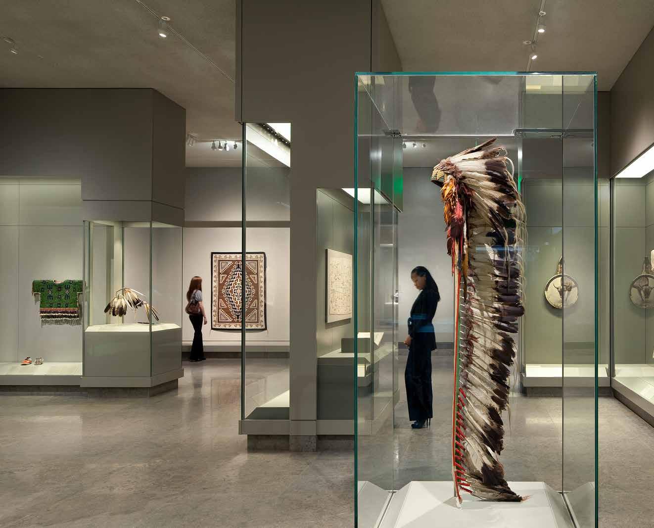 The collection is arranged according to seven geographic areas: Woodlands, Plains, Southwest, Plateau, California and the adjacent Great Basin, Northwest and Arctic. The design of galleries demonstrates departure from the neo-classical details of the original building, instead focusing on clean, modern details with a material palette that exudes richness and depth to place emphasis on the collection itself.