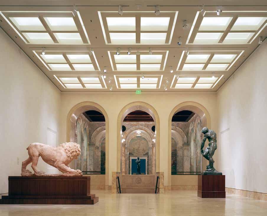 On the opposite end of the linear sequence of galleries is the Rotunda, an existing “nodal” gallery of its own significance, containing exhibits from the early 20th century, including the famed “Persephone” from Kansas City native Thomas Hart Benton and furniture designed by Frank Lloyd Wright. The Drawing and Print Corridor and Antechamber, which connect Rowland Hall to the original Rotunda, were also completely renovated. The galleries feature custom laylite glass ceilings, responding to the original glass ceiling installation found in typical galleries throughout the museum, and incorporating life safety and integrated lighting systems throughout.