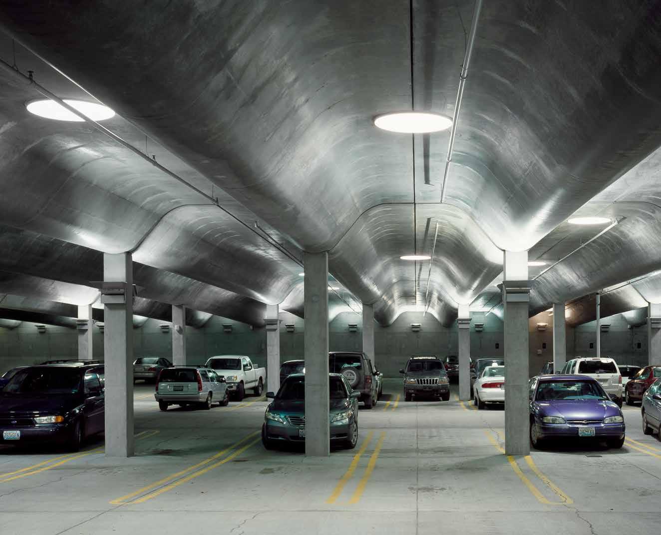 The main entry plaza for the Nelson-Atkins Museum of Art creates a beautiful and functional arrival experience for visitors, shaped by art and architecture. The entry plaza features a reflecting pool and installation entitled “One Sun/34 Moons” by Walter De Maria, which is situated above a 450-car belowgrade parking structure. Focused on drawing connections to the museum’s entry plaza above and creating a cohesive arrival experience, a specially formed ‘wave tee’ ceiling made of precast and cast-in-place concrete lets filtered light down into the parking garage via 34 lenses from the reflecting pool above. The parking structure further enhances visitors’ experiences through seamless connections between arrival and the museum entry with access the north plaza and the Bloch Building addition. The vehicular paving areas integrate a hydronic snow-melt system, eliminating concerns with damage from the freeze-thaw cycle or ice melting chemicals harmful to cementitious materials.