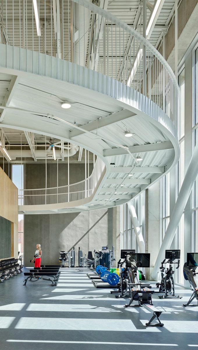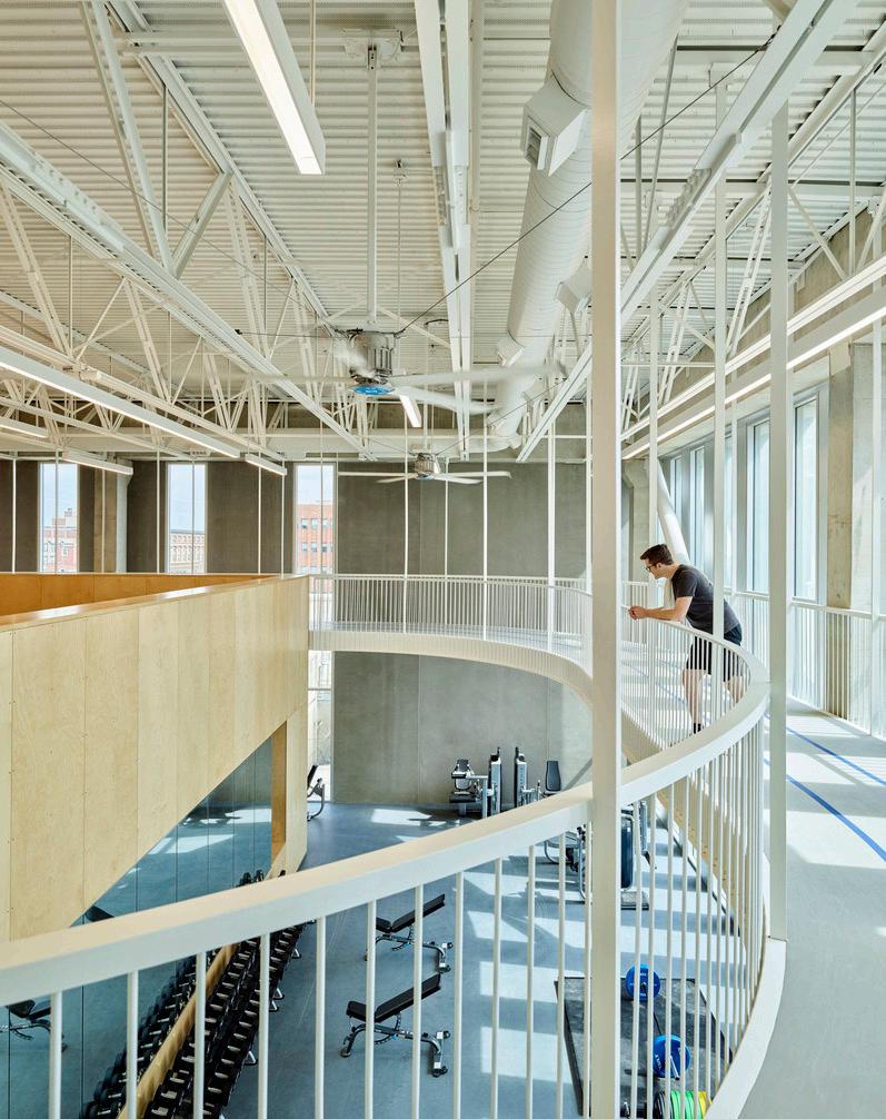 Components include a gym for adult and youth sports programming; a fitness center with cardio and strength training equipment, studios for group exercise, aquatics, an indoor track, and outdoor futsal field. The project also features four community meeting spaces including a demonstration kitchen. These community spaces are home for community engagement, workshops, volunteer training, and events. The historic lobby has been restored to its original grandeur and serves as a commons area including a café and a kids zone.