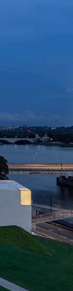 The expansion integrates the existing building, landscape, and adjacent Potomac River with three white, curving concrete pavilions that visually complement the iconic marble structure. Expansive, light-filled interior spaces support dedicated education, rehearsal, and gathering spaces. The landscape provides activated spaces for outdoor performances, as well as public gardens and private alcoves for moments of respite.