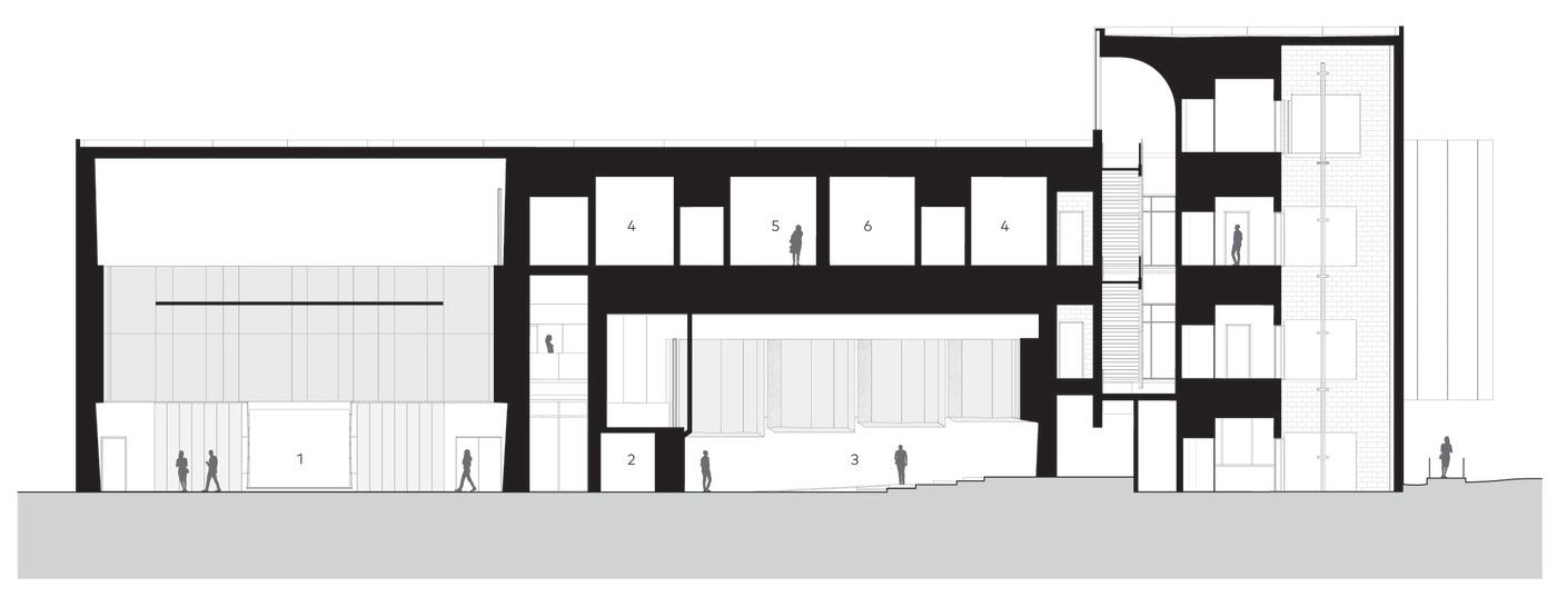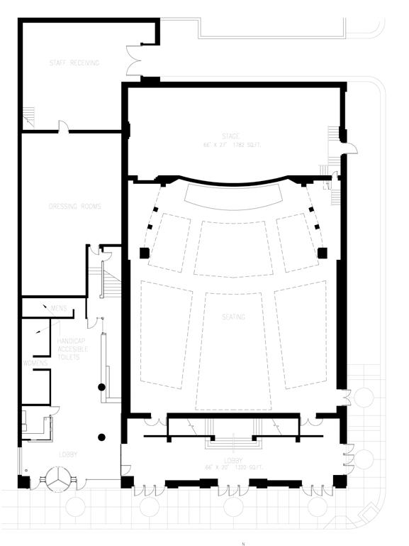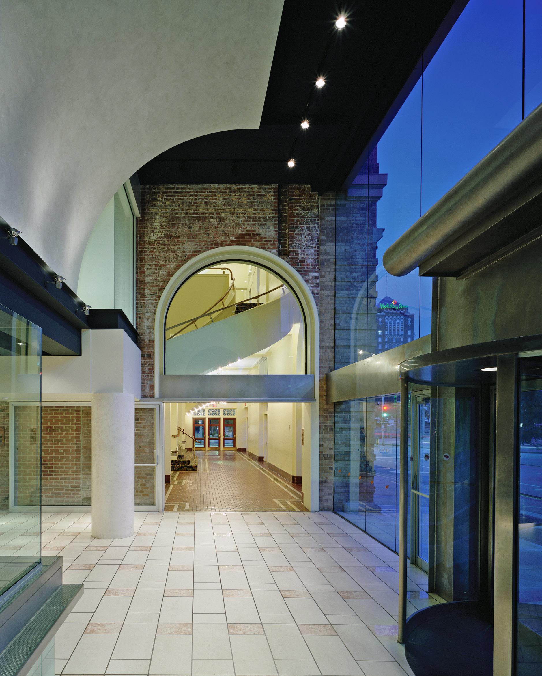 The first phase creates a new transparent glass lobby, which allows passersby to view activities inside and glows at night as an active component of the street life. It is a hub of interaction bringing the culture of the theater closer to the community: a gathering area for performances; a venue for smaller events, a place for communication about future events and a flexible classroom. While the delicate glass lobby is modern, the team honored the 1934 structure by keeping much of the original stonework, knitting the history of the community with its bright future.