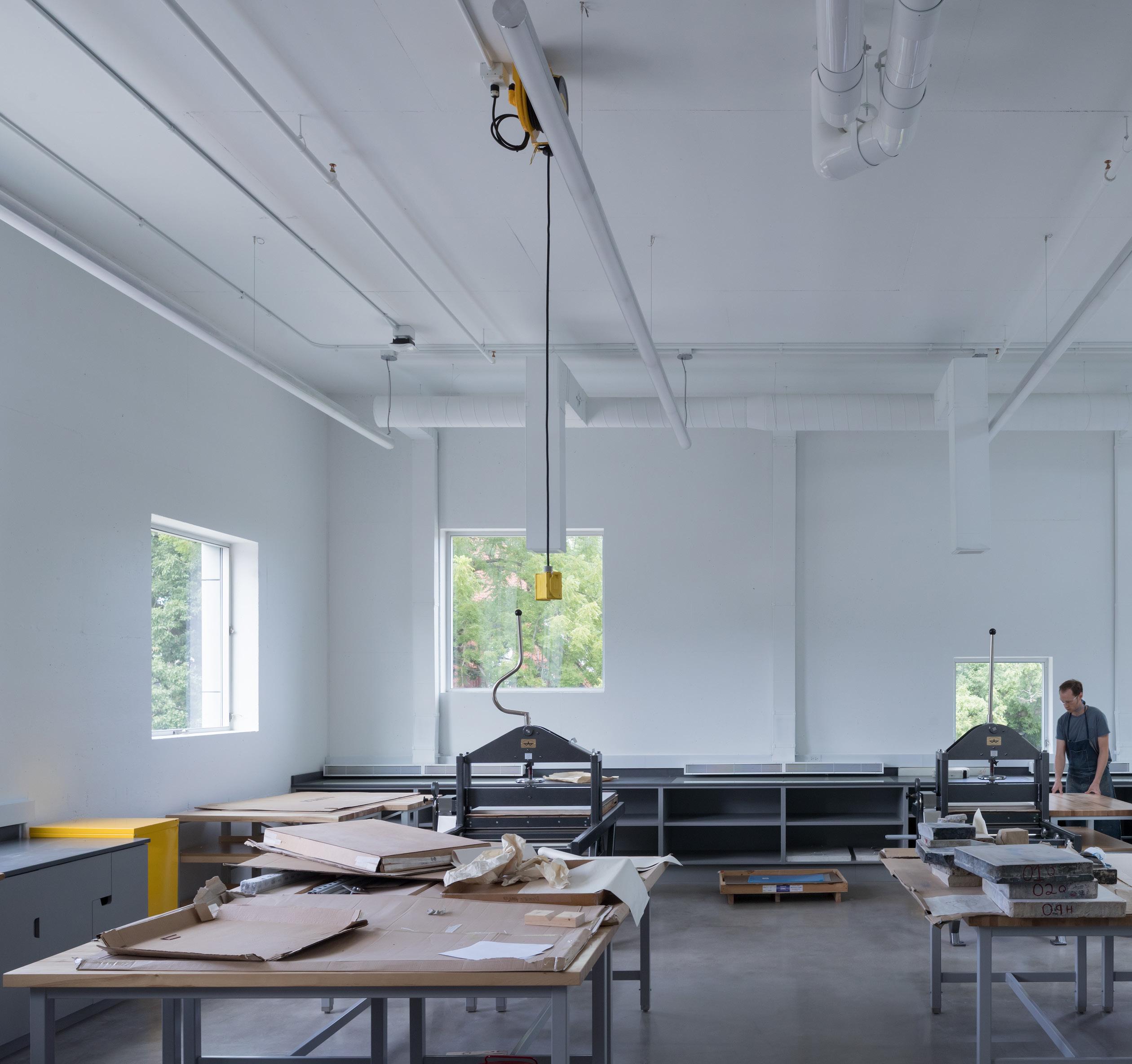 The Stanley Museum of Art features a visual arts laboratory classroom where works of art are installed for students’ coursework observation. A visible storage room, teaching studios, offices, and collaborative staff and volunteer spaces are also dedicated to the research, support, and teaching of the collections.