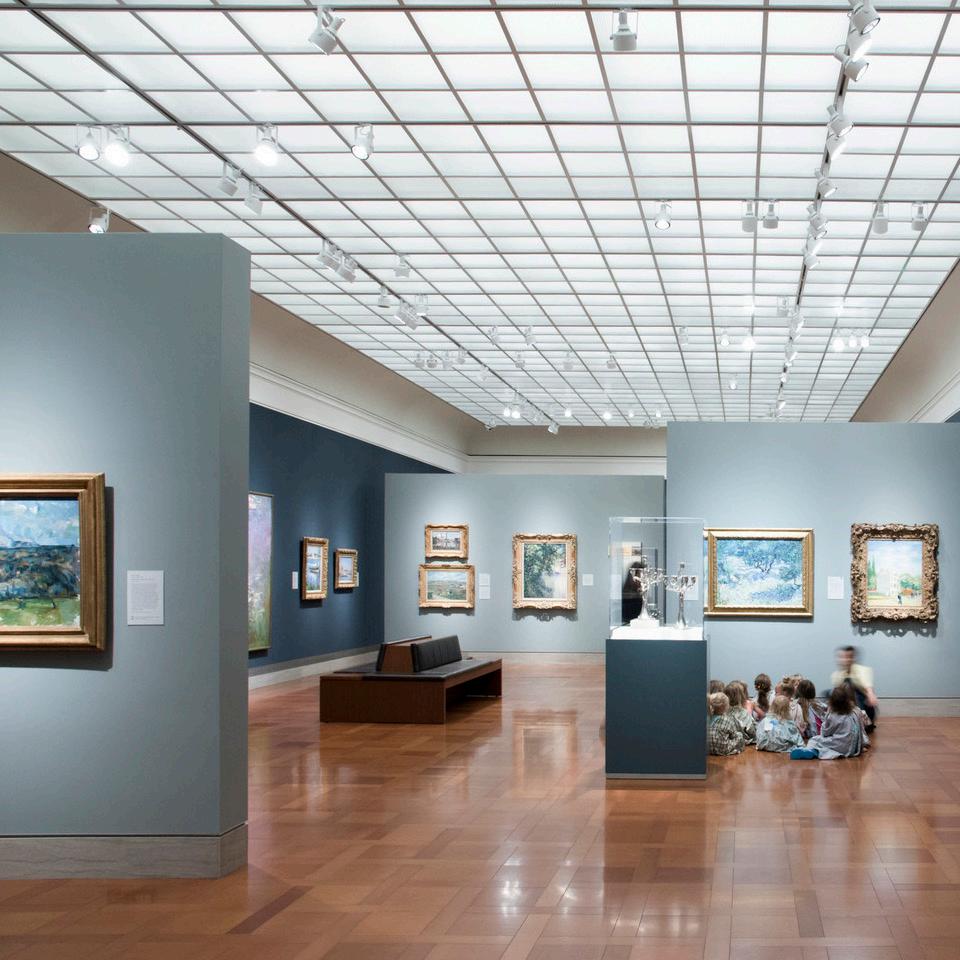 BNIM’s work at the University of Missouri School of Music and the Princeton University Lewis Center for the Arts (with Steven Holl Architects) pulled the individual practice and performance spaces apart into a series of “boxes,” which enhanced the acoustic isolation between each area (below). Also, the Kauffman Center for Performing Arts boasts near-perfect acoustics, promising an exceptional experience for performers and audiences alike. In the Bloch Galleries at the Nelson-Atkins Museum of Art (left), BNIM collaborated with specialty lighting designers and museum staff to create unique environments for extremely delicate works of art, with systems that maintain a constant temperature and lighting that dims when sensors do not detect movement in the gallery.