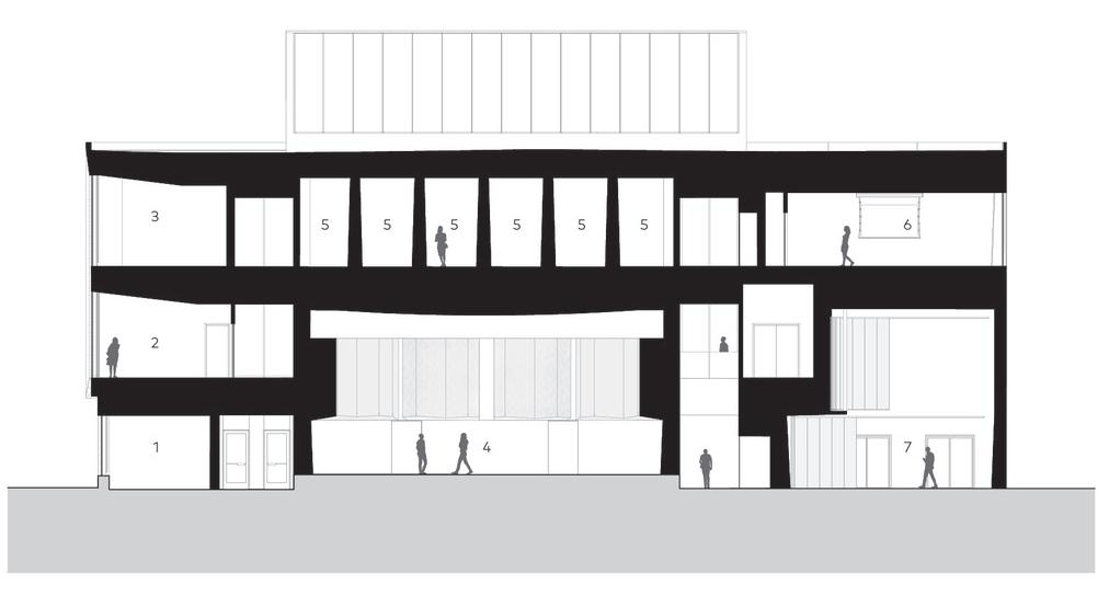 0 30’ 1 Art Lounge 2 Entry / Lobby 3 Courtyard 4 Restrooms 5 Gallery Space 6 Visible Storage 7 Light Well 8 Offices 9 Exhibition Terrace 10 Visual Classroom 11 Collection Storage 5 5 5 5 5 8 8 8 9 6 9 11 10 11 11