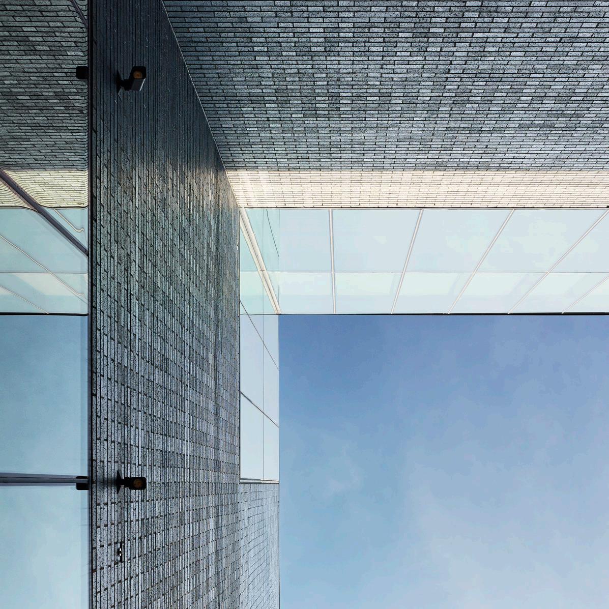 Dynamic and kinetic dark, warm brick exterior recalls the academic and cultural brick masonry buildings of Alvar Aalto, Louis Khan, and Eero and Eliel Saarinen. Through an alternating composition of brick texture and brick finish, the façade is transformed by the daily and seasonal changes in sunlight.