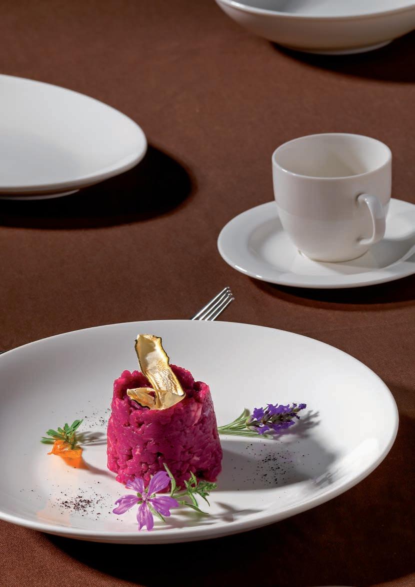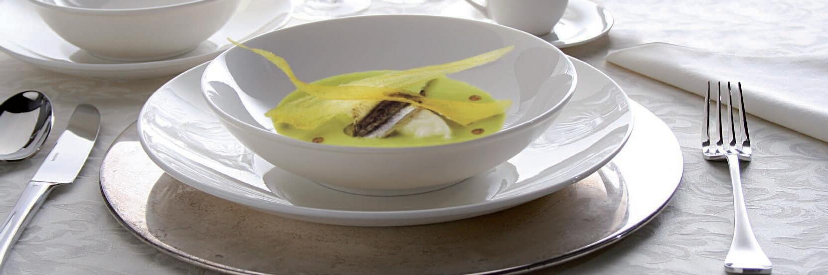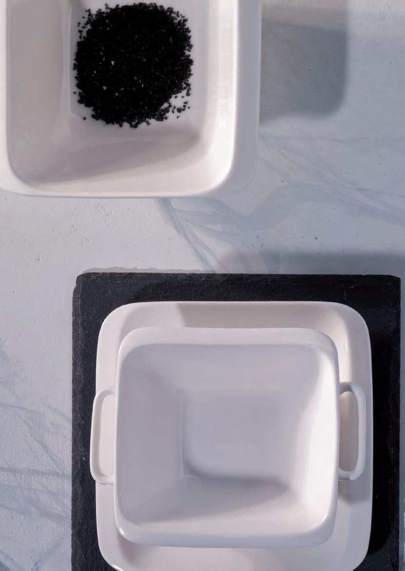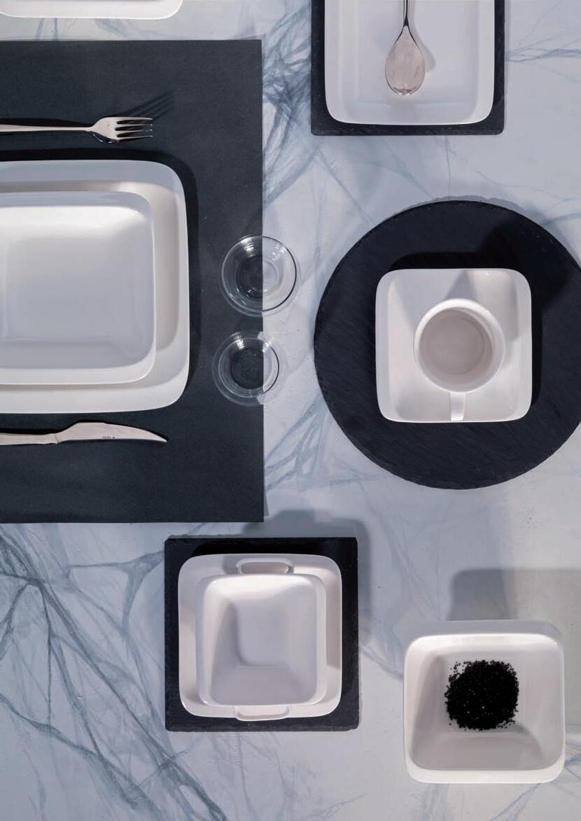 The elevated cooking temperature to which our Porcelain is exposed guarantees a high resistance to abrasions and scratches caused by normal table utensils. This is important not only from an aesthetic point of view, but - most important - hygienic.